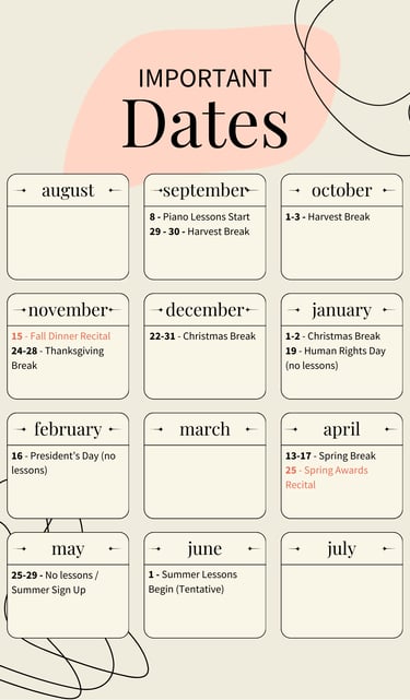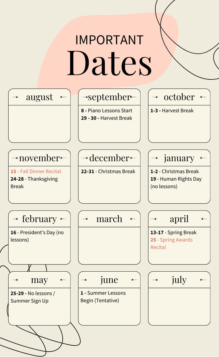 Group lessons are held on Mondays from 5:15 - 6:00 PM